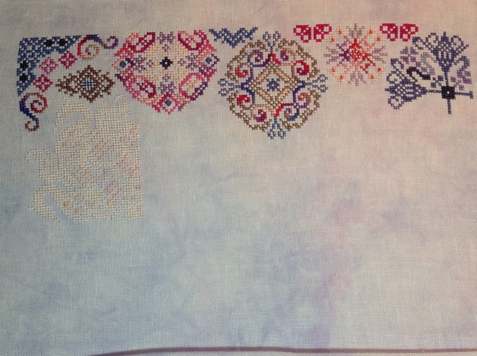 At least I have my Swans & Shears SAL piece to look at, with its spring-like colors. Part four was released last Thursday, and this was my stopping point for that part: